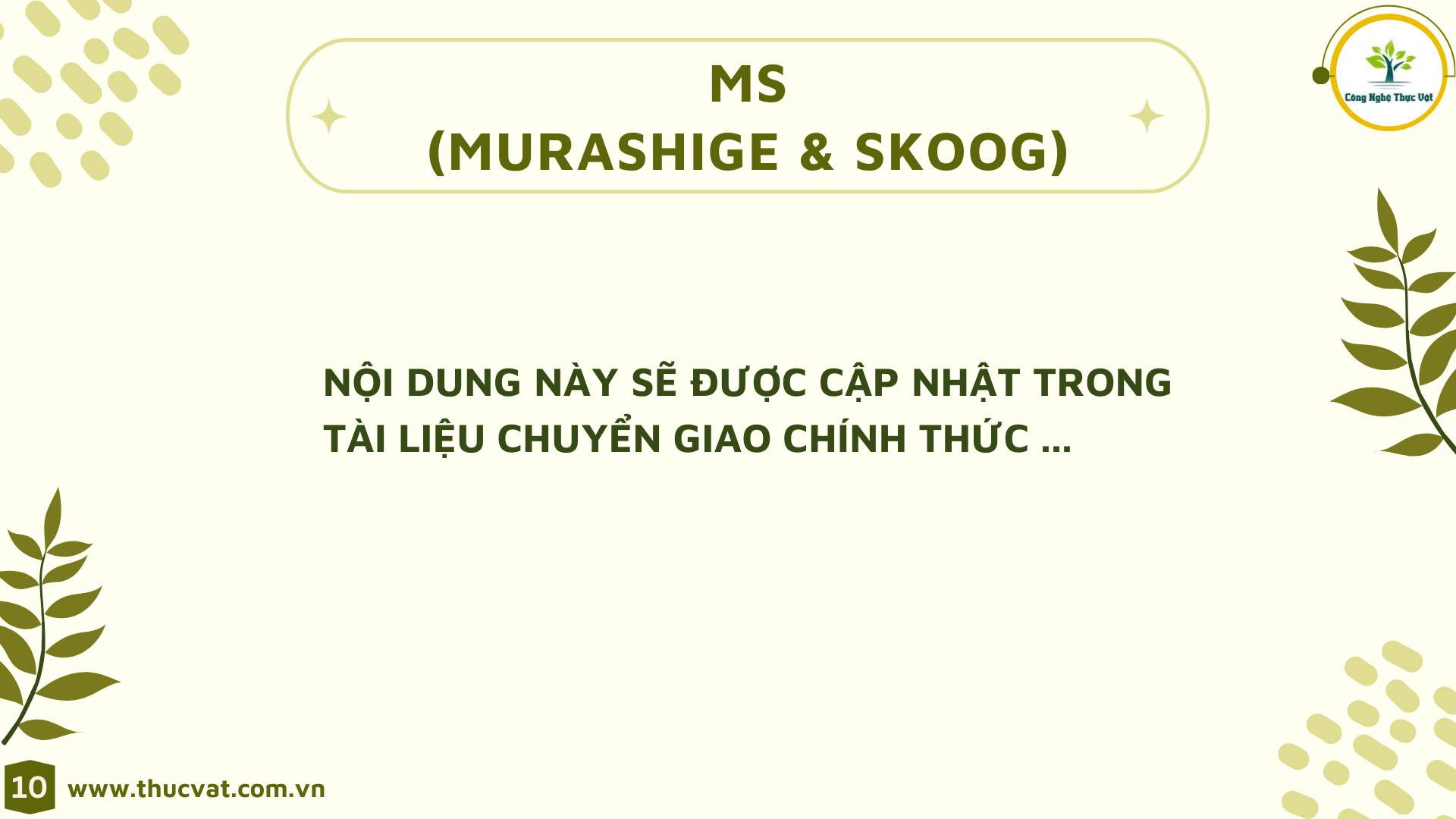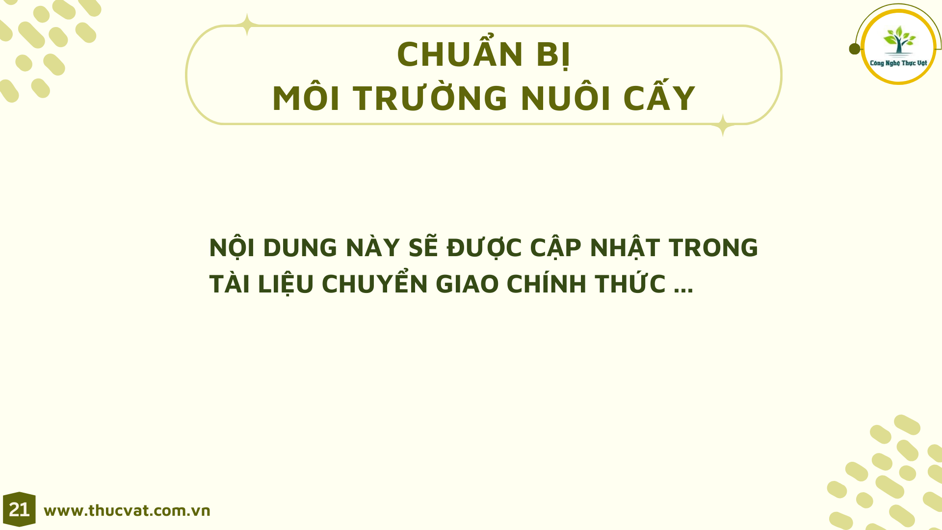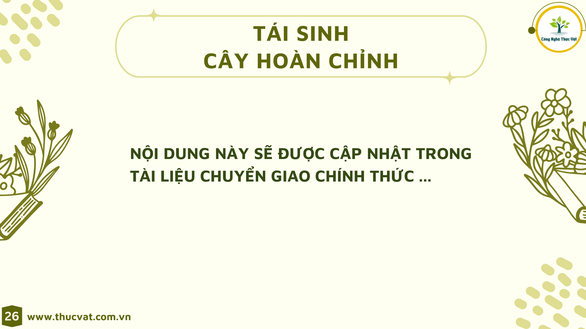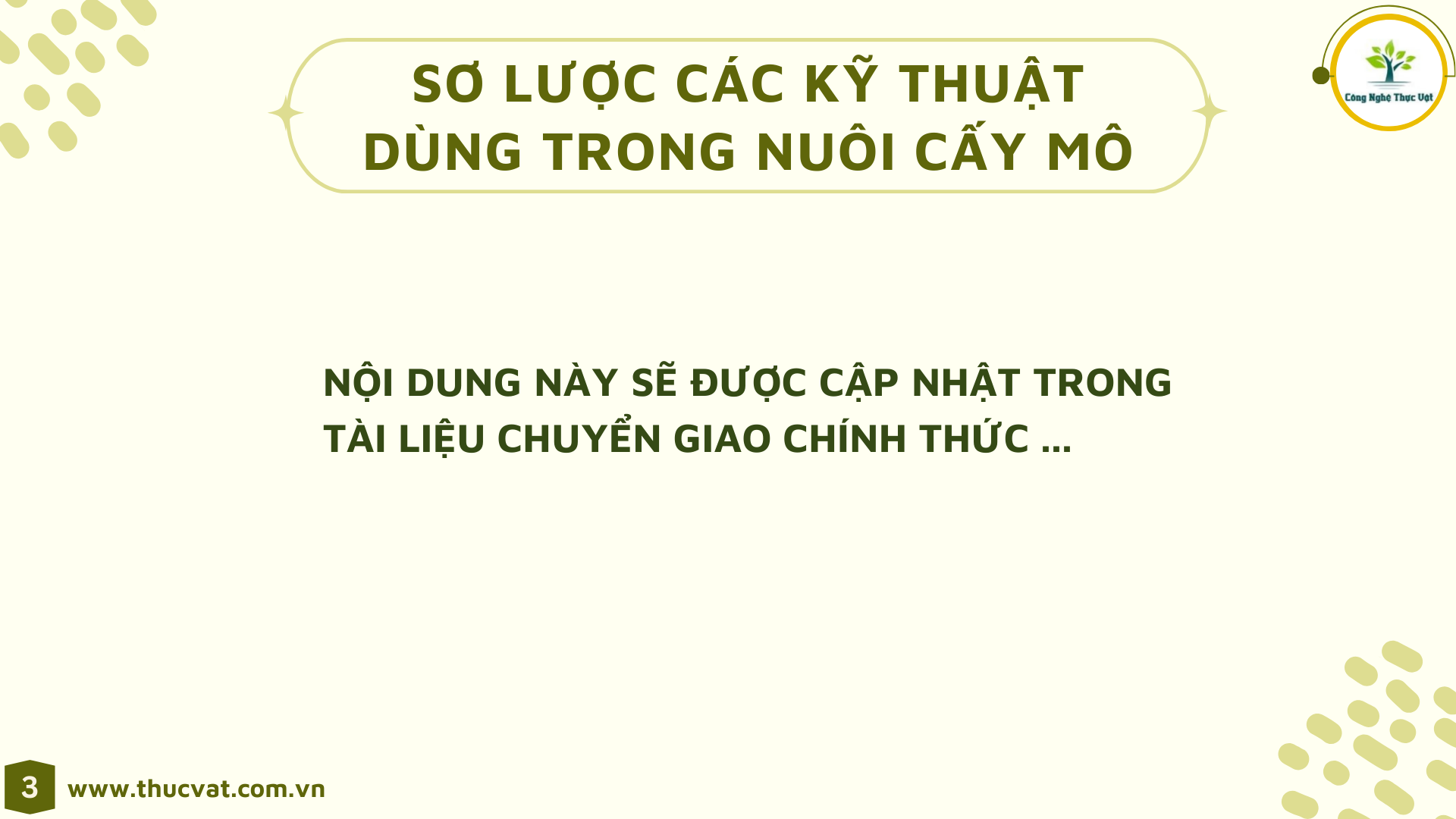 Để hiểu và vận dụng thuần thục các phương pháp Nuôi cấy mô hiện đại một cách toàn diện thay vì chỉ biết lý thuyết hoặc thực hành.