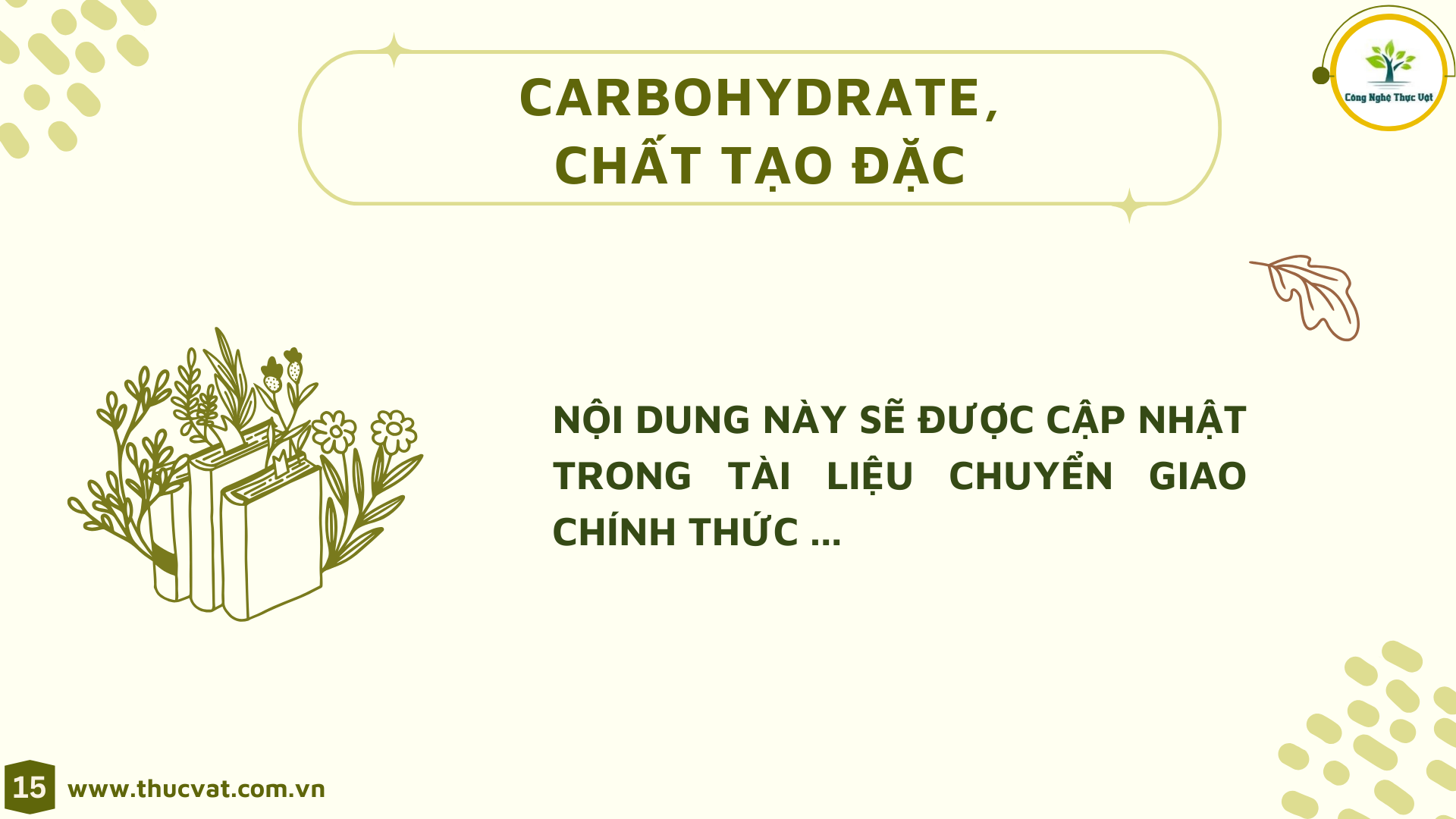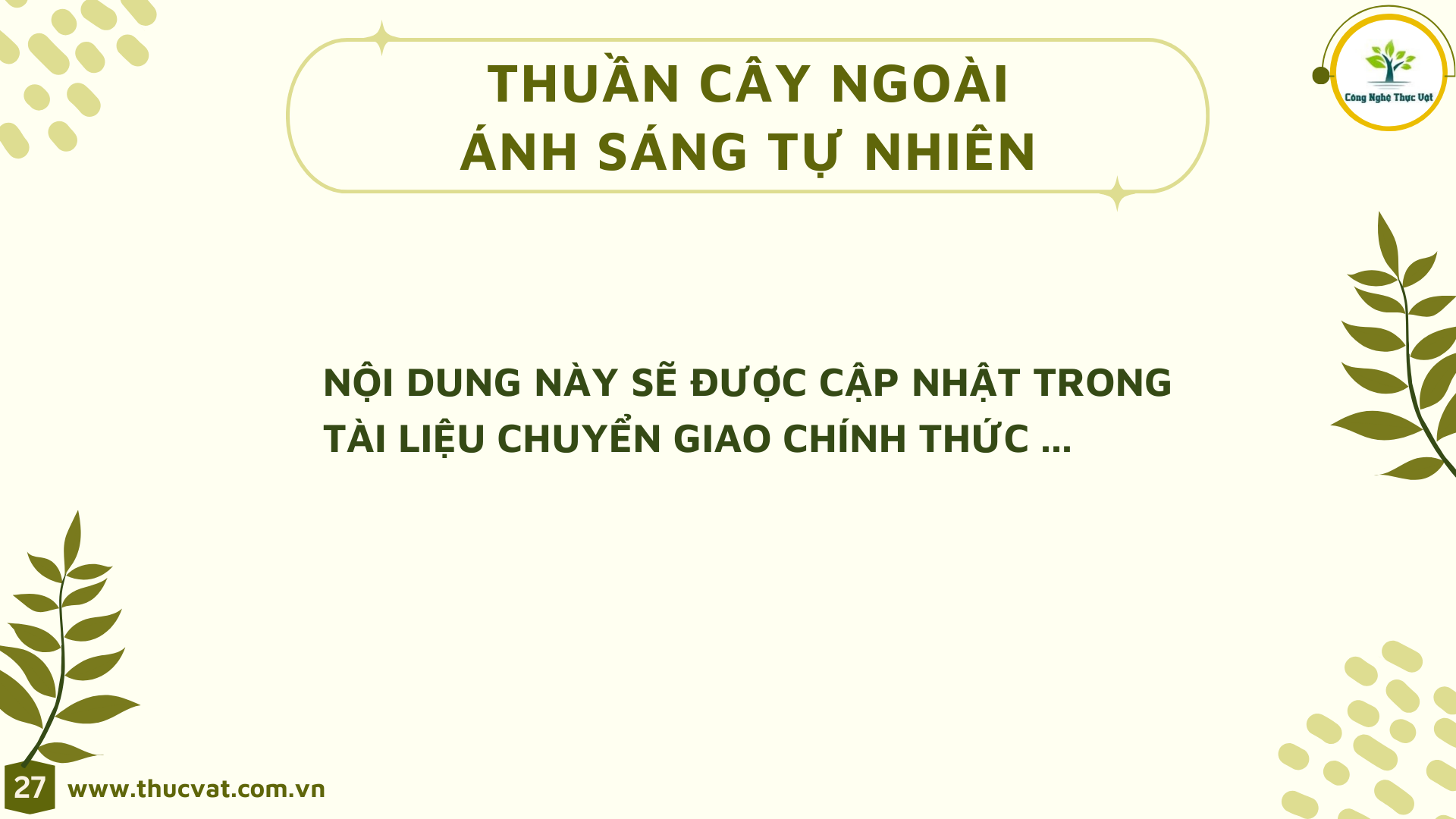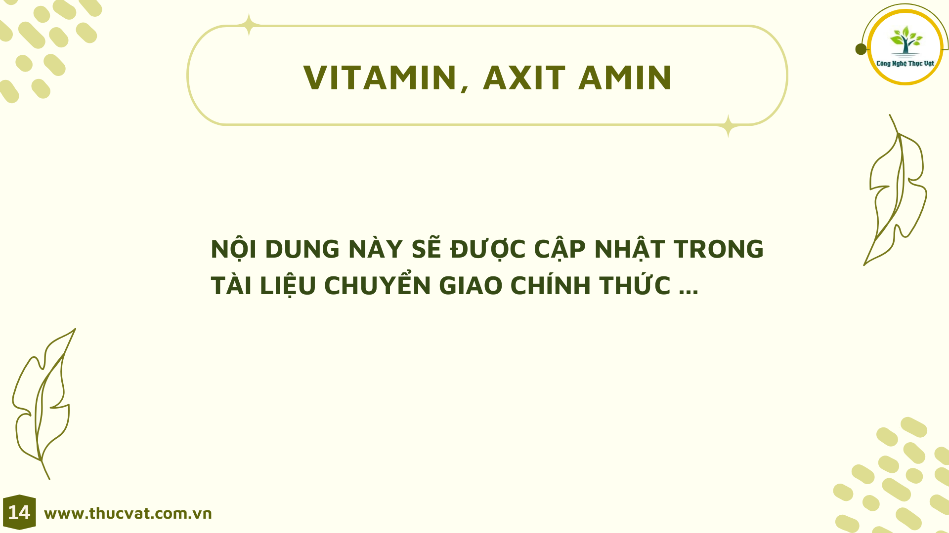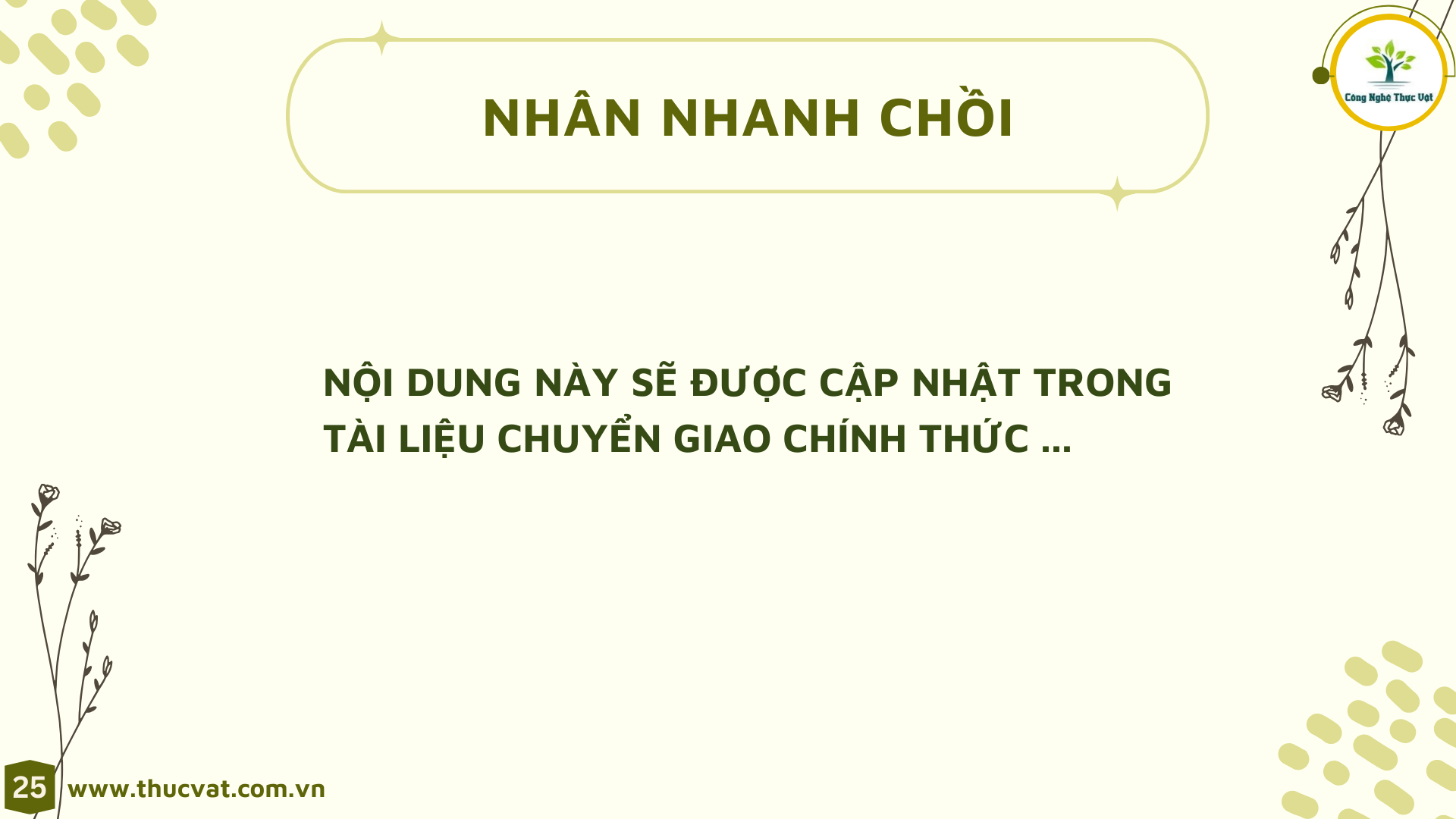 Nội dung lý thuyết, chúng tôi chỉ thiết kế chiếm 20% thời lượng . Phần đào tạo kỹ năng và thực hành sẽ là chủ đạo của quá trình chuyển giao công nghệ.