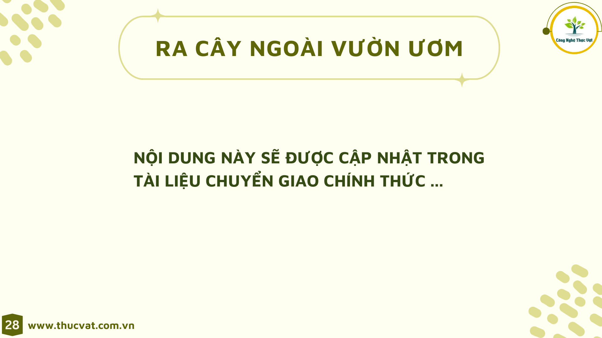 Hai từ “Thực Chiến” được các người hướng dẫn giàu kinh nghiệm làm việc tại các công ty sản xuất cây giống lớn trong nước hết sức chú trọng.