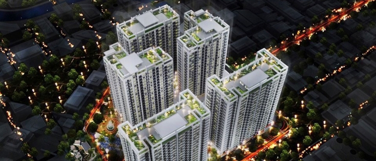 Bao gồm 5 Block cao 26 tầng với 1.500 căn hộ 2 tầng hầm, tầng 1&2 trung tâm thương mại, căn hộ ở tầng 3 – 26. |