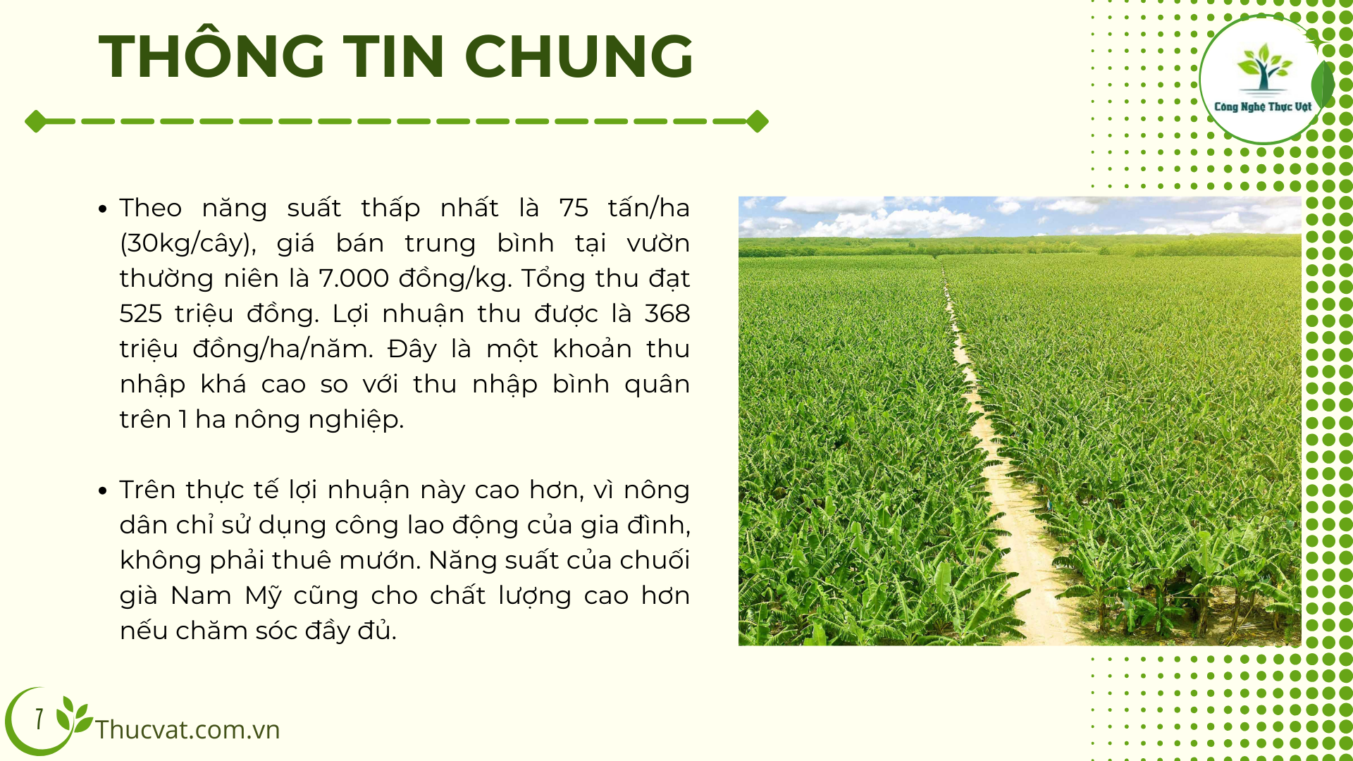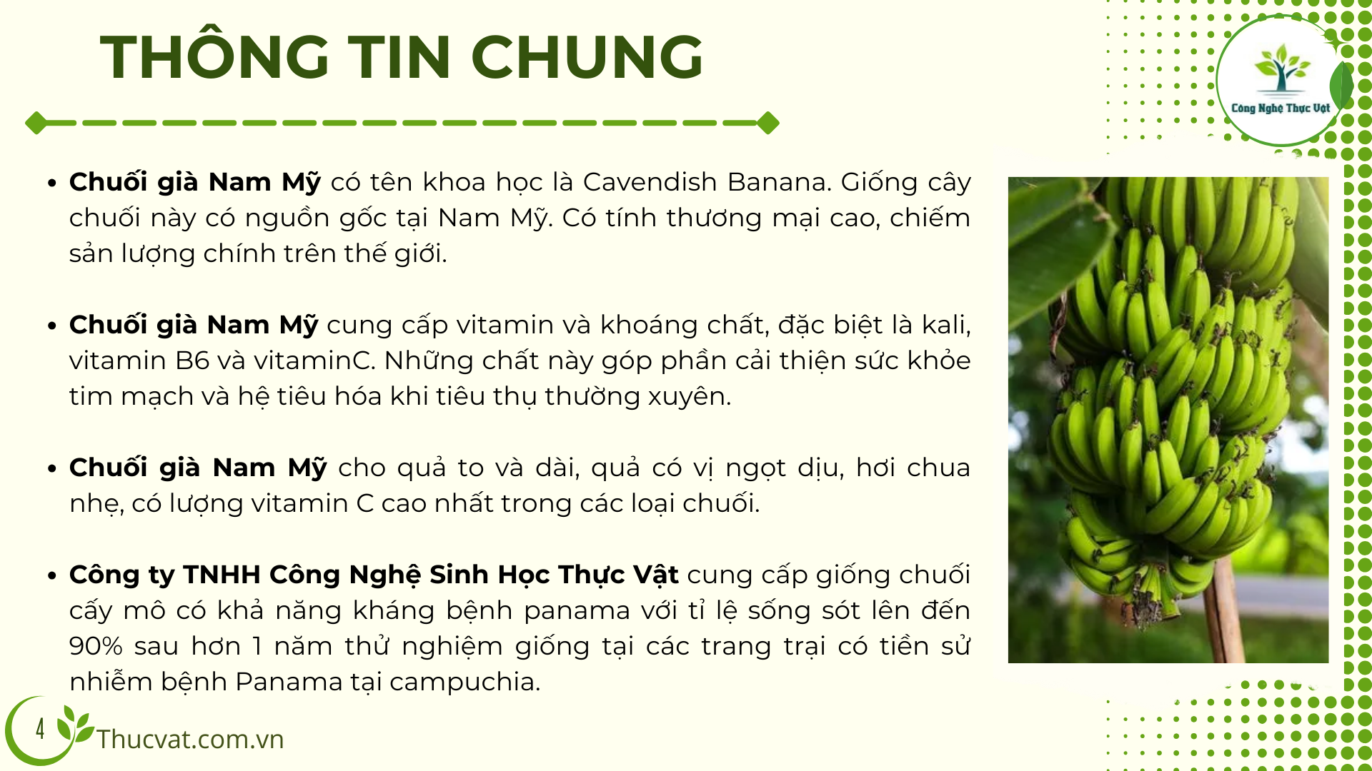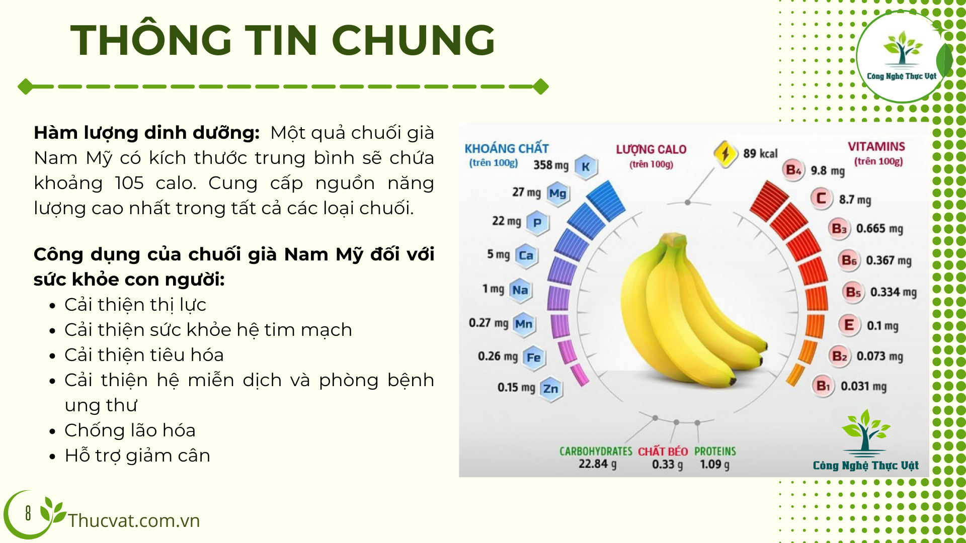 Thông tin dinh dưỡng trong chuối Nam Mỹ của Thucvat.com.vn