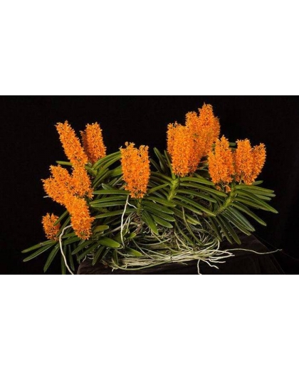 Lan hỏa hoàng cam còn có tên khoa học là Ascocentrum Miniatum. Chúng là loài sống ở các vùng nóng và sống bám trên các giá thể cứng như gỗ, xơ dừa, than. Hình dáng của hỏa hoàng cam khá ngắn, thân mập với hoa dạng chùm. Loài hoa này sẽ ra hoa vào khoảng cuối mùa xuân đầu mùa hè.