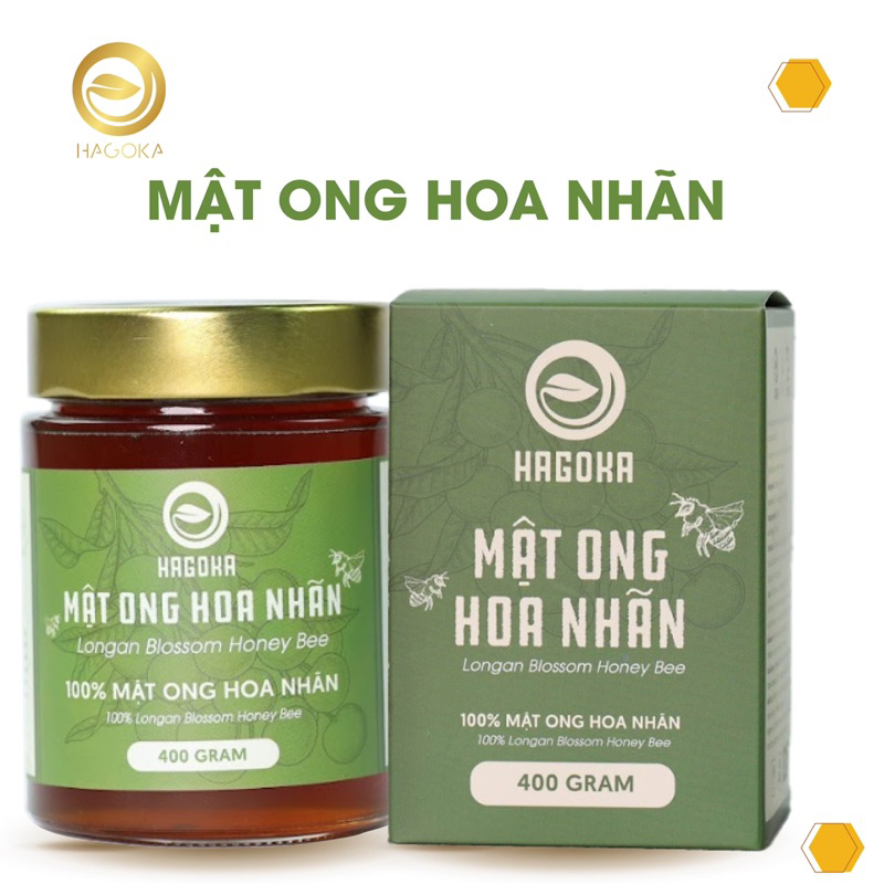 - Mật ong hoa nhãn nguyên chất Hagoka do ong mật đi lấy phấn hoa về tổ tạo thành. Thành phần của mật ong hoa nhãn nguyên chất gồm các loại đường tự nhiên, nước và rất nhiều vitamin và dưỡng chất.