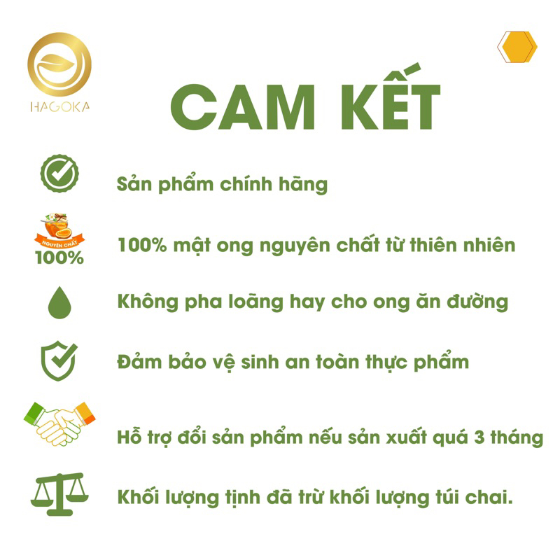 Mật ong chính hãng thương hiệu độc quyền HAGOKA cam kết :