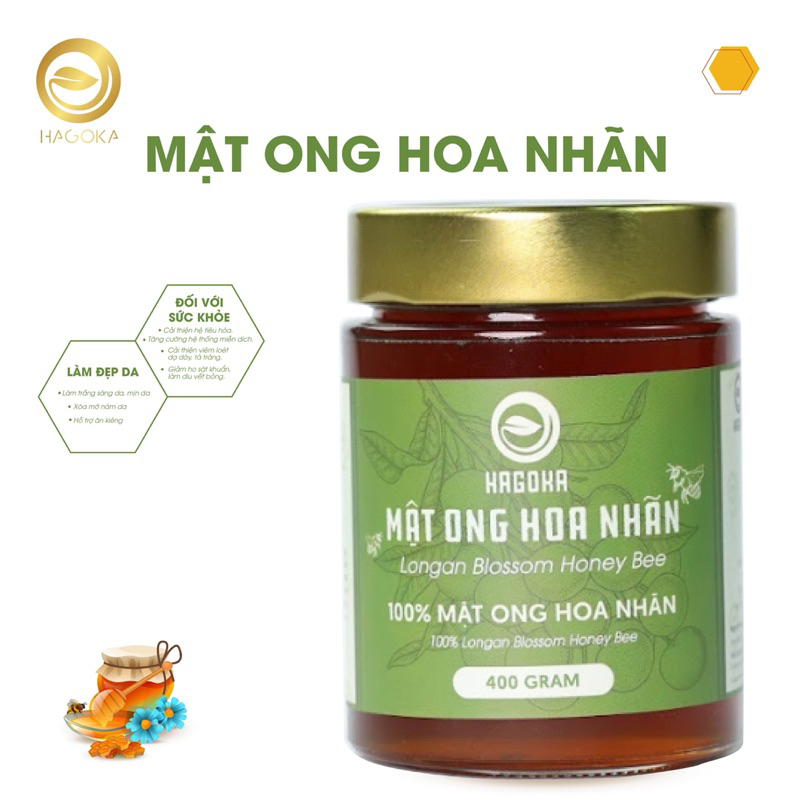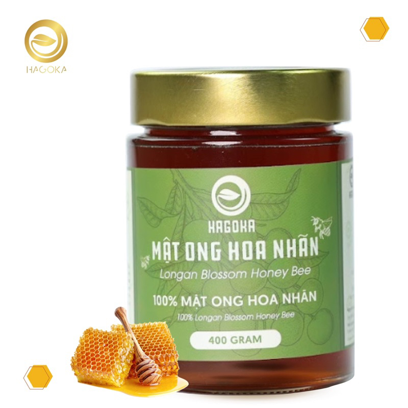 - Mật ong hoa nhãn nguyên chất Hagoka do ong mật đi lấy phấn hoa về tổ tạo thành. Thành phần của mật ong hoa nhãn nguyên chất gồm các loại đường tự nhiên, nước và rất nhiều vitamin và dưỡng chất.