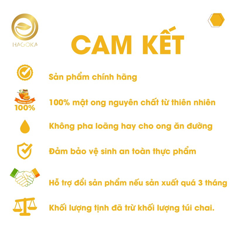 - Mật ong chính hãng thương hiệu độc quyền HAGOKA cam kết :