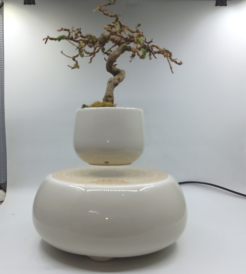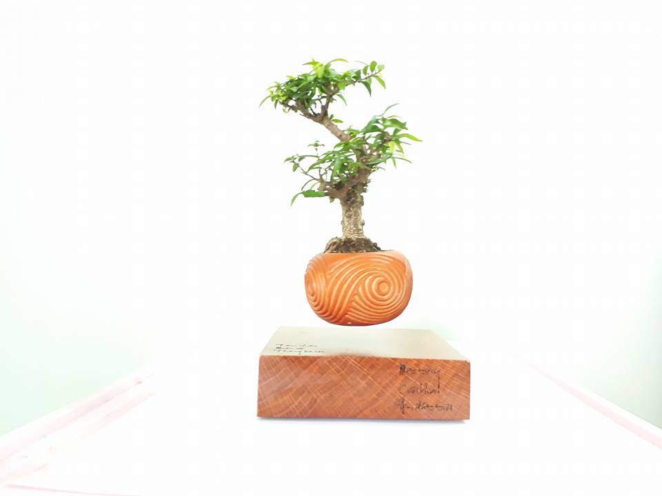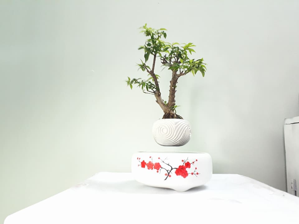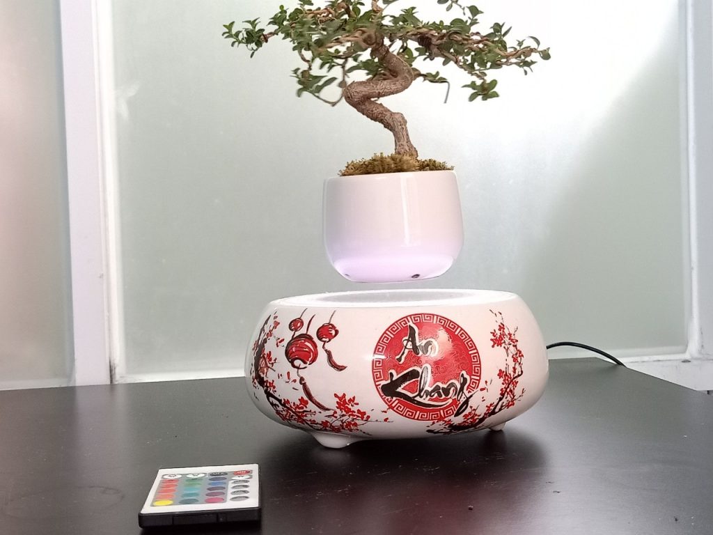 - Bạn còn nhớ ngày xưa trong những thí nghiệm giờ vật lý. Khi bạn đang chơi với nam châm và bạn nghĩ rằng bạn muốn được nổi tiếng sau khi trở thành người đầu tiên dính thành công hai nam châm đẩy lùi với nhau? (Chỉ cần được rõ ràng, tôi không nói rằng cá nhân tôi đã làm điều này …) Đó là sức mạnh này đối lập mạnh mẽ mà giữ cây bonsai bay lơ lửng (phần trên).