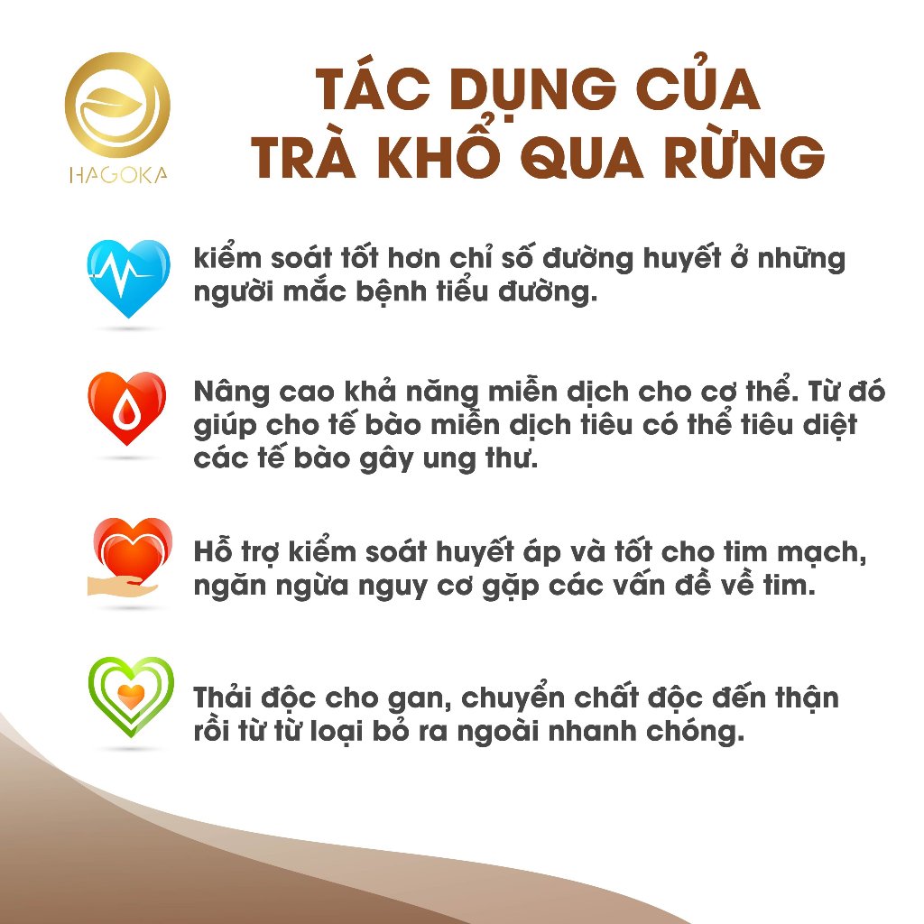 HAGOKA cam kết trà túi lọc khổ qua nguyên chất 100%, HOÀN TIỀN VÀ BAO ĐỔI TRẢ
