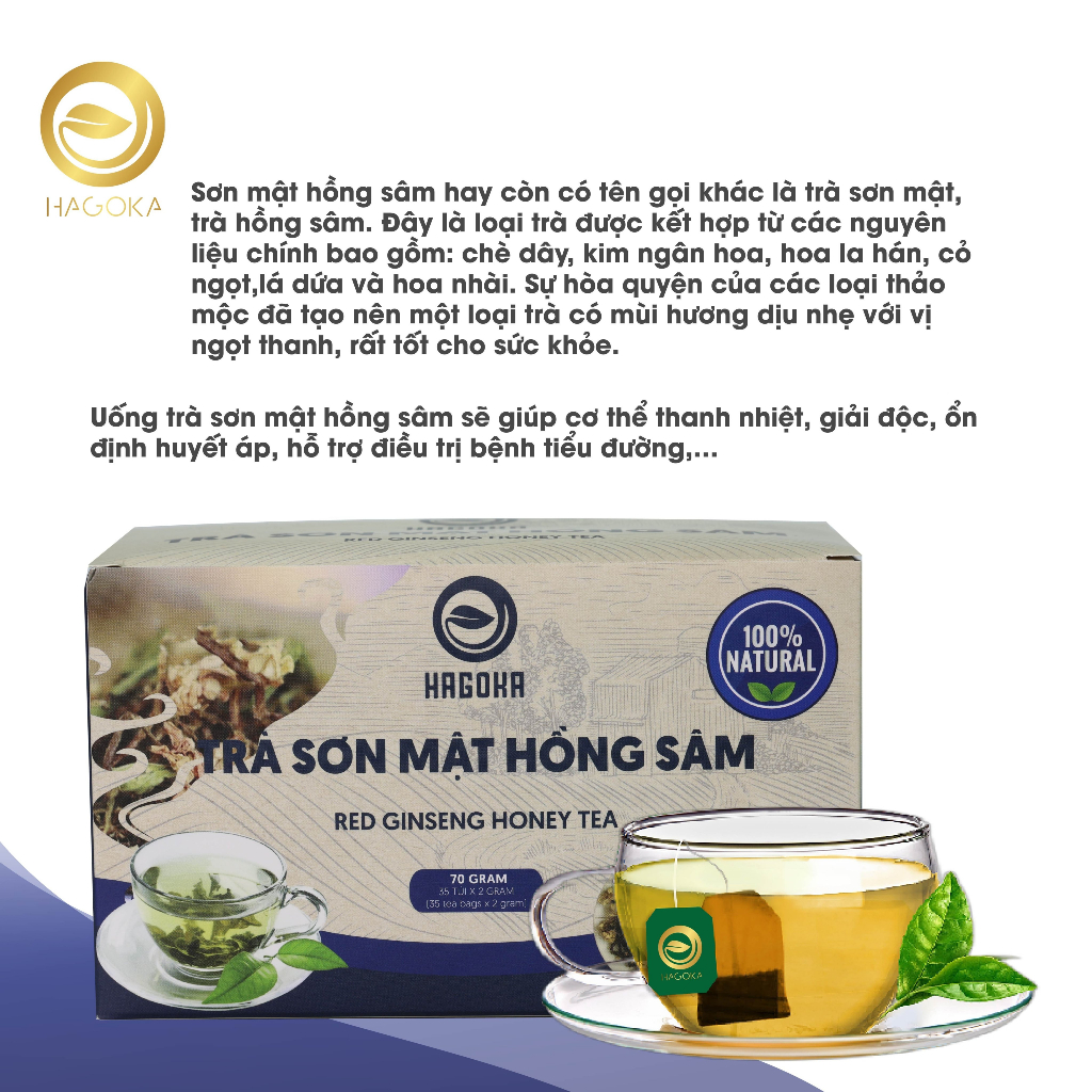 - Trà túi lọc sơn mật hồng sâm Hagoka Giải độc cơ thể, tăng cường cho gan, làm hạ men gan 35 túi lọc